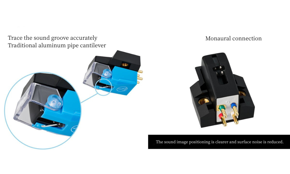 By connecting the left and right channels of the stereo cartridge body, this design cancels the vertical signal component of the record groove, which is unnecessary for monaural reproduction. This results in clearer sound-image localization and reduced surface noise during mono playback.