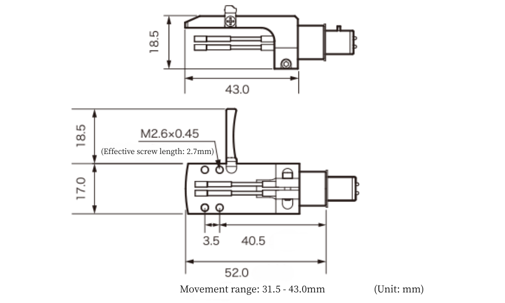 | Dimensions | H18.5 × W17.0 × D43.0mm (excluding connector and protrusions) |