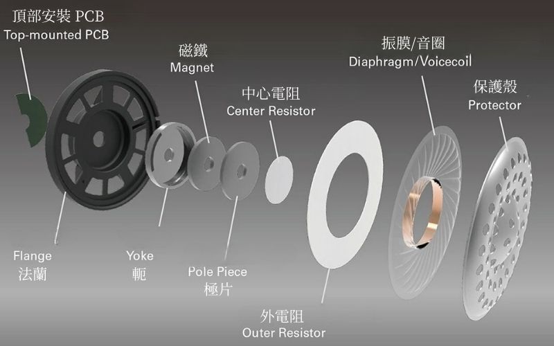 Top-Mounted PCB Design: To achieve more precise control over diaphragm movement, the PCB is mounted at the top rear of the driver unit.