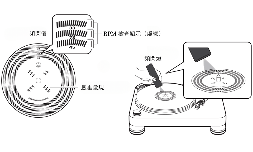 | 頻閃轉速計 (Stroboscope) - 對應轉速 | 33-1/3、45、78 RPM |